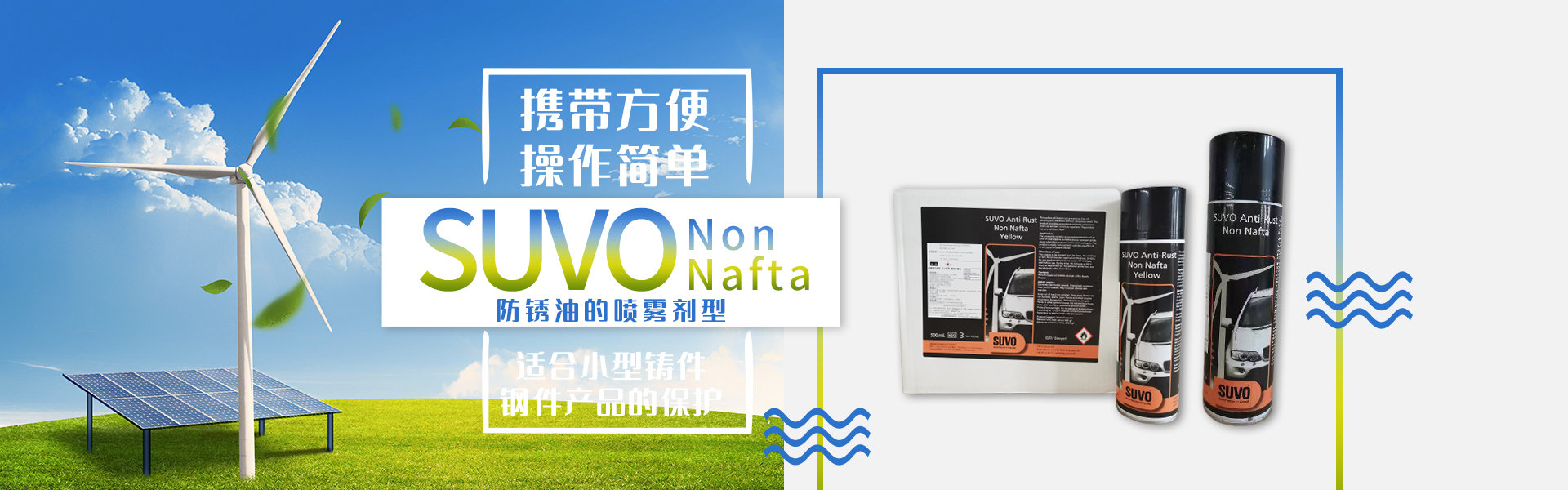 該產(chǎn)品為Non Nafta防銹油的噴霧劑型。適合對小型鑄件、鋼件產(chǎn)品的保護;同時噴罐帶有細(xì)長噴嘴,容易進入鋼件或鑄件的小孔、內(nèi)腔等難以用刷子涂刷的地方。本品也非常適用于野外環(huán)境下小范圍檢修后對金屬部件的補防,攜帶方便、操作簡單。